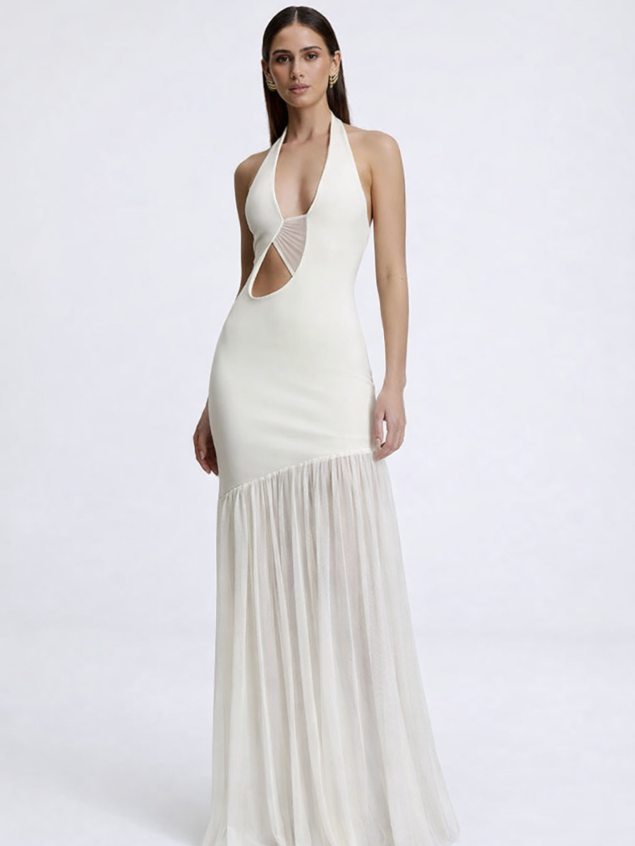 Por ser um vestido em tom claro, indicamos o uso de lingerie em tom de pele para um acabamento mais elegante e discreto.